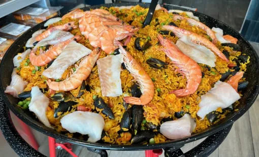 À la Poissonnerie Florent, notre paëlla maison est préparée avec soin et générosité par Florent