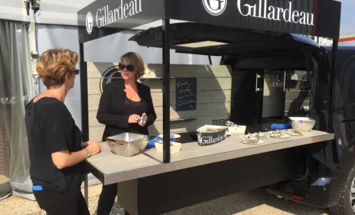 A la poissonnerie Florent à Chaponost animation huîtres et camion GILLARDEAU.